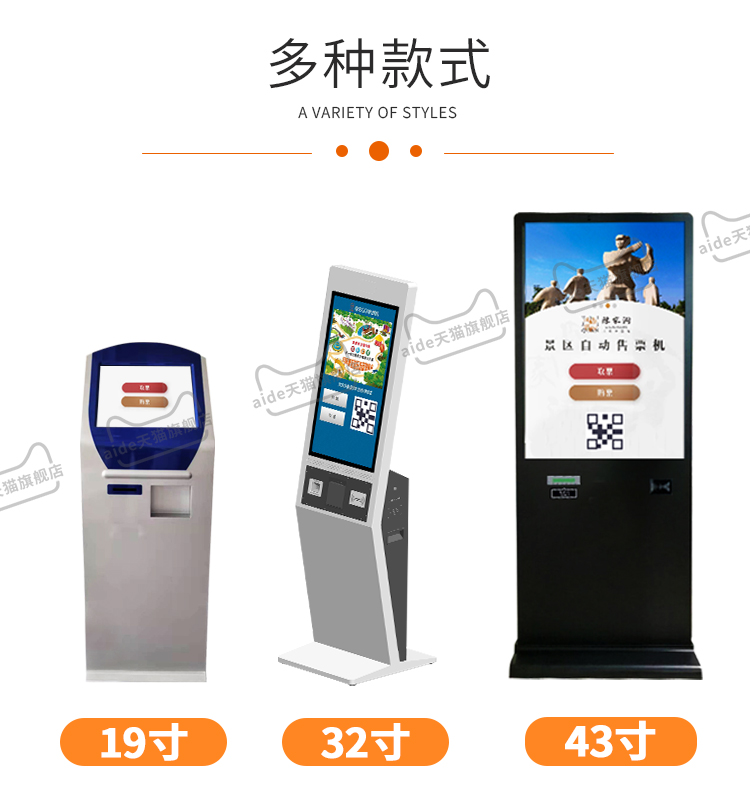 自主售取票、二維碼取票、便捷打印、自主查詢、廣告投放、3C認證、高清大屏、全鋼化高防爆玻璃、多點觸控、強勁CPU、防塵、防干擾、外形美觀...
